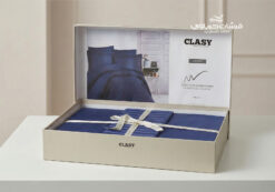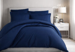 طقم وجه لحاف فندقي أزرق غامق (سترايب) من مجموعة Clasy التركية