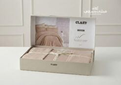 طقم وجه لحاف فندقي بني الفاتح (سترايب) من مجموعة Clasy التركية