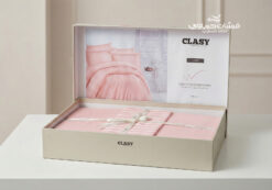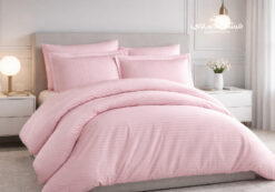 طقم وجه لحاف فندقي لون زهري (سترايب) من مجموعة Clasy التركية