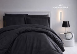 طقم وجه لحاف فندقي لون أسود (سترايب) من مجموعة Clasy التركية