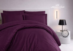 طقم وجه لحاف فندقي لون عنابي (سترايب) من مجموعة Clasy التركية