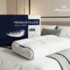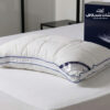 وجه مدرب مع طبقه من زغب الأوز الفاخر مع الأسفنج الذكي ( الميموري فوم ) بالشكل الكلاسيكي يتماشى مع العنق والرأس ويوفر توزيع مثالي من نقاط الضغط لتخفيف آلام الرقبة، والإجهاد والأرق وانسيابيه بجريان الدورة الدمويه وخاصة لمن ينامون على الجنب .