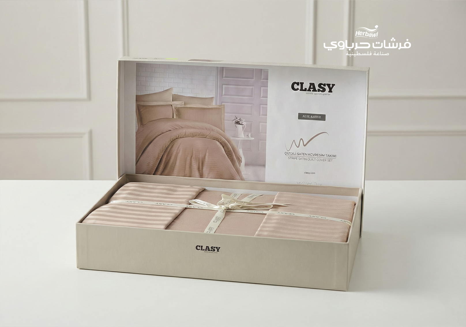 اجمل مفارش السرير التركية, دلل نفسك بملمس كالحرير مع وجه لحاف من مجموعة Clasy سترايب. مصنوعة من القطن %100، ويتميز بنمط الشريط الكلاسيكي الذي يعطي لمسة أنيقة لديكور الغرفة ويعطي انطباعا لا ينسى لكل من تقع عينيه عليه مما يجعله افضل ما يمكنك الحصول عليه.